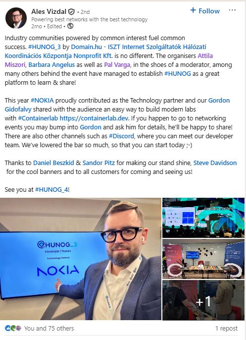 Több, mint 280 résztvevő, 124 cég, 20 szponzor és 35 előadó részvételével zajlott Magyarország harmadik NOG konferenciája, amely azzal a céllal jött létre, hogy platformot biztosítson több száz hálózati- és rendszermérnök tudásának megosztására.